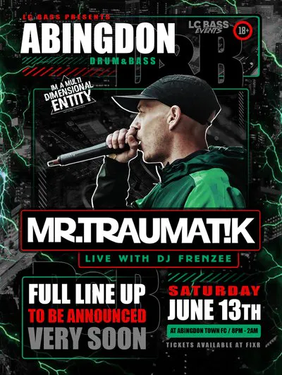 Step into our Multidimensional world of madness and mayhem, as we bring Abingdon Town football club another night full of DNB, with The Mr Traumatik Showcase live and direct.