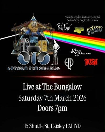 "Outside The Original is an exciting project from James Finnigan of Hue and Cry and Stiltskin fame. We are a prog rock show performing the music of ELP, early Genesis, Yes, King Crimson, Pink Floyd and Rush"