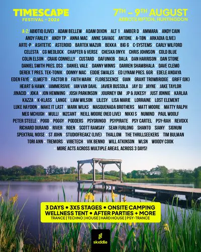 Welcome to Timescape Festival, the ultimate celebration of electronic music, where past and present collide in a symphony of euphoria. Set against the stunning backdrop of the UK countryside, Timescape is a unique journey through the best of all genres of trance, techno, psy-trance, house and dance, designed to ignite your senses and transport you to a world beyond time.