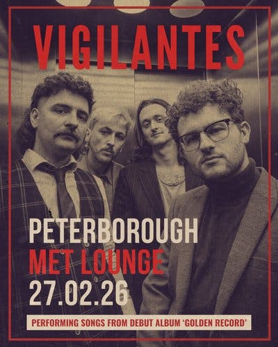 Vigilantes craft a thoughtful, melodic style of indie rock that's as anthemic as it is atmospheric with thoughtful lyricism and explosive choruses. They do it so well that they have been placed on Radio 1's Best Of BBC Introducing playlist and had repeat airtime on BBC Radio 1, Radio 6 & Radio X. Noted by Fresh on the Net's Tom Robinson as 'On a mission', Vigilantes were part of National Lottery/MVT's Revive Live Tour in 2022 and released their debut album 'Golden Record' in 2025.