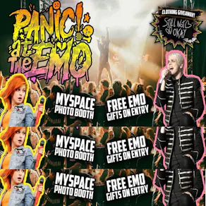 Panic! At The Emo is back and this time it’s bigger, louder and more chaotic than ever. This isn’t a background DJ set or a quiet trip down memory lane, this is a full-scale emo takeover! We’re pulling the Myspace era of fringe cuts, eyeliner and band tees straight into 2026 and turning the room into absolute scenes from the moment the doors open.