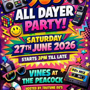 On Saturday 27th June 2026, we're bringing the ultimate 90's All Dayer to Vines at The Peacock, Peterborough.