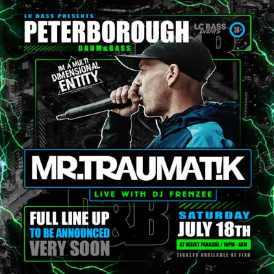 Get ready for a night of high-frequency energy as the Mr Traumatik UK Tour 2026 lands in Peterborough. Experience a multidimensional showcase featuring the raw lyricism and signature "philosophical bars" of the Cardiff legend himself, joined by DJ Frenzee and a stacked lineup of heavy hitters.