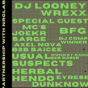 DJ Looney - Wrexx - Special Guest DJ - Unusal Suspects - Herbal - Hendo, Eyerese, Dunknow - Axel Nova - Baicee - BFG - DJ Comp Winner - MC's hosting the event - Sarge & Joekr.