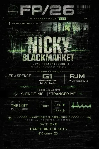 Headlining the night is Nicky Blackmarket, a true pioneer of the UK scene known for high-energy sets and heavyweight selection. Expect a full live performance delivering pure drum & bass from start to finish.