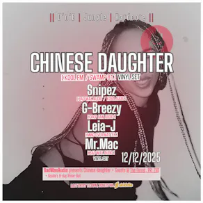 South London born and bred Chinese Daughter is a vinyl only DJ with her own show on legendary Kool FM/ Rinse FM. Both on radio and at the rave she showcases her favourite selections of original, new, and future Jungle records plus the sounds of bass-lead old school rave, future hardcore, and breaks that she finds in between. She is part of iconic label Swamp 81.