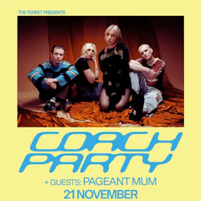 Hailing from the Isle of Wight, Coach Party have quickly become one of the most exciting names in the UK indie-rock scene. Armed with a punchy mix of fuzzy guitars, sardonic lyricism and heart-on-sleeve vulnerability, the four-piece: Jess Eastwood (vocals/bass), Steph Norris (guitar), Joe Perry (guitar), and Guy Page (drums) - channel the likes of Wolf Alice and Pixies while carving out a sound that's unmistakably their own.