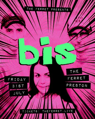 A whirlwind first 18 months saw bis go from playing to a handful of curious future fans in Glasgow basements to peak-time TV stardom on Top of the Pops and filling huge tents at festivals across Europe all while still teenagers. While the UK media was in equal parts enamoured and horrified by the unorthodox musical DNA of the band, their knack for a nagging melody, unrelenting energy and wide-eyed politics saw them hit big in Japan, nearly breakthrough in America where they had label support from the Beastie Boys and touring with a diverse range of acts reflecting the disparate range of influences the band had – Foo Fighters, The Cardigans, Bikini Kill and Pavement to name but a few.