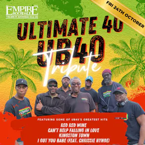 Get ready to feel the rhythm and vibes of classic and contemporary reggae with Ult 40 Reggae at Empire Rochdale. With smooth grooves, infectious basslines, and soulful vocals, this tribute brings the very best of reggae to life, keeping the dance floor moving all night.