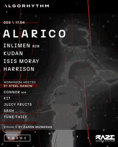 With releases across iconic labels such as Klockworks, Mutual Rytm, and Primal Instinct, Alarico has established himself as a driving force of modern techno. Fast-paced, weight-driven and funky; his relentlessly functional sound is perfectly built to maintain control and excitement deep into the early hours.