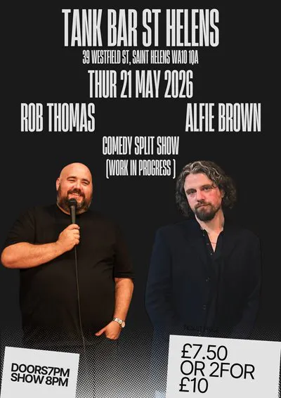 Alfie Brown (as seen on Live at the Apollo) joins Liverpool comedian Rob Thomas — who’s supported Paul Smith on tour — for a brand-new material night in St Helens.