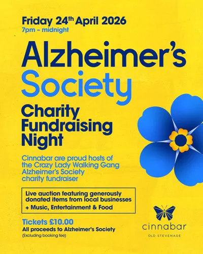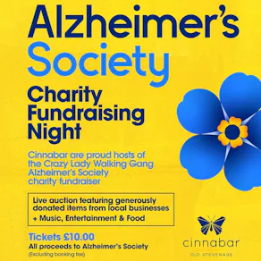 Cinnabar the proud sponsors of The Crazy Lady Walking Gang who are hosting a Charity Fundraising Night in support of Alzheimer's Society 💜