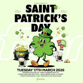 Fubar presents our annual St Paddy’s Day party and if you’ve ever been before you already know this is one of the biggest nights of the year.