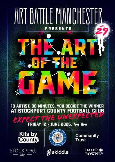 The city's most energetic art event is heading to Edgeley Park on Friday 12th June to host an Art Battle MCR quite unlike anything before. Known for never repeating a venue in over 13 years, the hugely popular event will transform the historic home of Stockport County F.C. into a one-night-only creative arena - giving audiences the chance to experience the ground like never before.