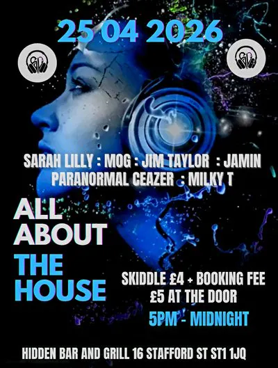 WE'RE BACK !! All About The House presents a night of house music at Stokes newest music venue, Hidden bar and grill. Located on Stafford Street, it sits close to our original venue. We are giving our dedicated following all the things they have come to expect from us over the last couple of years. House music old & new, in an intimate setting. featuring our talented local grassroots DJ's.