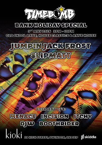 Timebomb presents another banging old skool rave, classic house & rave house event with two legends of the scene - Jumpin Jack Frost & Slipmatt