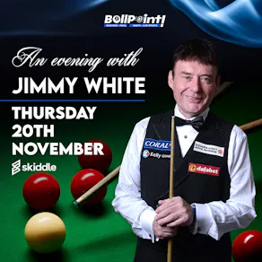An evening with JIMMY WHITE the Whirlwind of snooker, he'll be playing 8 frames of snooker against Various guest players from 7.30pm, he'll then hold a Q&A with our guest audience and a meet and greet in our players lounge bar with Photo opportunities for those wishing to take home the memory shared with Jimmy.