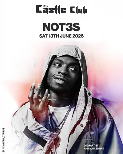 The Castle Club welcomes UK artist Not3s to Room 2, Club Sin, for a special appearance showcasing one of the most recognisable sounds in modern British urban music. Emerging from Hackney, London, Not3s rose to prominence with the breakout single Addison Lee before achieving wider chart success with releases including Aladdin, My Lover, and Fine Line. His blend of rap, afroswing, and melodic hooks has earned millions of streams and established him as a distinctive crossover figure within the UK scene.