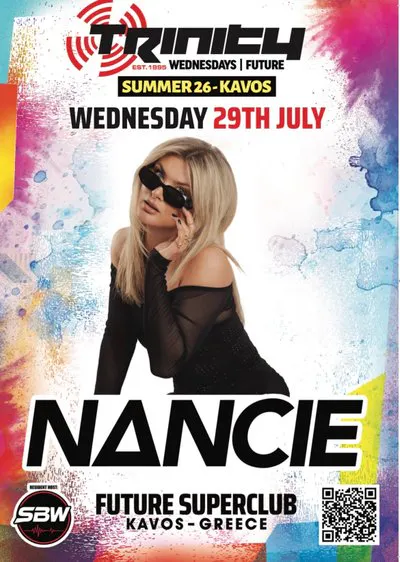 We’re buzzing to welcome the incredible Nancie to KAVOS 2026 for her debut set at Trinity! 🎧☀️🇬🇷